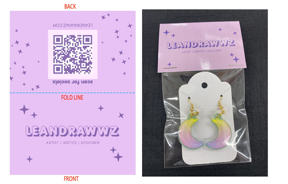 LEANDRAWWZ PACKAGE DESIGN FEATURING GRADIENT EARRING DESIGN, BOTH DESIGNED IN ADOBE ILLUSTRATOR